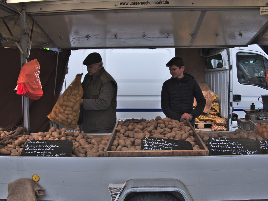 Die Familie Kayser (mit y) bietet schon seit Generationen Waren auf Märkten an. Sie sind auf Kartoffeln und Zwiebeln spezialisiert und wissen sehr genau woher sie gute Ware bekommen. Fragen nach den verschiedenen Sorten und deren Verwendung werden gerne beantwortet.
